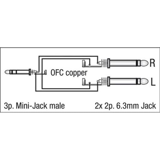DAP FL31 1X STEREO MINI-JACK NAAR 2X JACK 3M