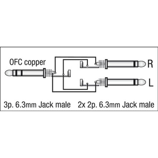DAP FL34 1X STEREO JACK NAAR 2X MONO JACK 6M