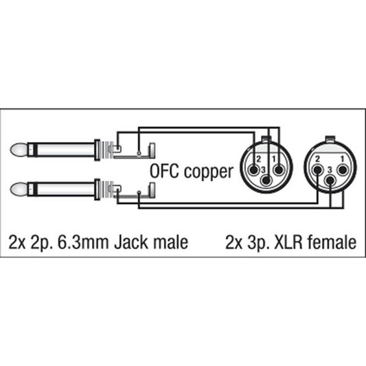 DAP FL43 2X XLR FEMALE NAAR 2X JACK 3M
