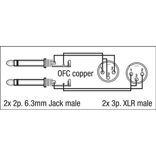 DAP FL44 2X XLR MALE NAAR 2X JACK 3M